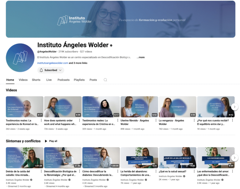 Entre 2018 y 2019 lideramos la transformación digital del Instituto: optimización completa del canal de YouTube, implementación de una nueva estrategia de creación de contenido, inicio de los primeros podcasts y gestión profesional de Instagram. El resultado fue un salto en la calidad y consistencia de la comunicación online de la marca personal de Ángeles.